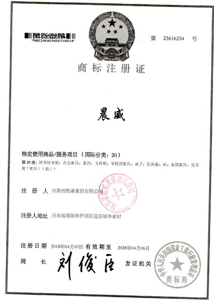 スタンダード:trademark 番号:23616254 発行日:2018-04-07 有効期限:2028-04-06 で発行:State Administration for Industry and Commerce of China |